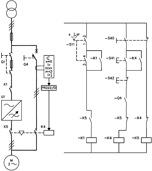 對(duì)于變頻器出線端接觸器K5和旁路接觸器K4,西門(mén)子也給了三種選型的建議: