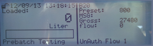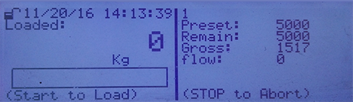 6、當(dāng)批控器裝車量達(dá)到設(shè)定量后,自動關(guān)閥停止裝車;如果過程中需要停止裝車,點(diǎn)擊”Stop”鍵一次,暫停裝車;連續(xù)點(diǎn)擊”Stop”鍵兩次,則停止裝車。