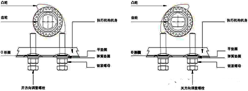 ②某執(zhí)行機(jī)構(gòu)則通過開方向和關(guān)方向的調(diào)整螺栓來控制凸輪與齒輪之間的相對(duì)位置。