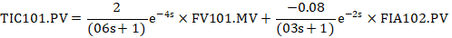 在上圖所示的控制中,當(dāng)TIC101投自動(dòng)時(shí),可以用閉環(huán)數(shù)據(jù)獲得前饋系數(shù)。在溫度控制時(shí),擾動(dòng)DV發(fā)生變化ΔDV,在反饋?zhàn)饔孟拢罱KMV會(huì)抗擾變化ΔMV,ΔMV/ΔDV就是前饋系數(shù);