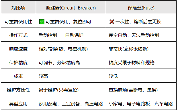 3、斷路器和保險(xiǎn)絲對(duì)比