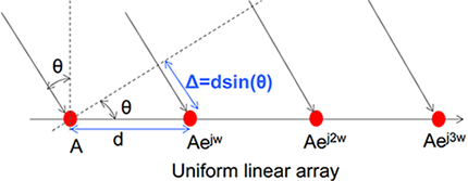 下圖是一個(gè)均勻四天線的線性陣列,相鄰天線的波程差(Δ)取決于到達(dá)角θ。