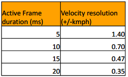 它其實(shí)和距離分辨率一樣也是取決于SNR ,同樣速度精度通常也是速度分辨率的一部分。另外給出一個(gè)速度分辨率和幀周期的表格。大家可以按照這個(gè)計(jì)算一下練練手。