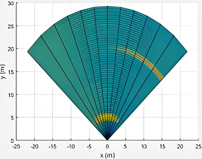 從公式可以看出來,當(dāng)θ=0時(shí),分辨率是最佳的,可以從下面的圖中直觀的看出,角度越大,分辨單元就越大。
