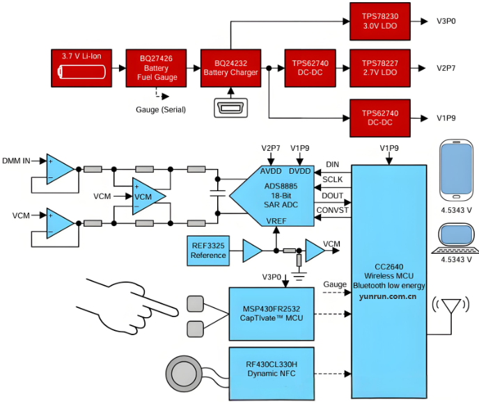 bq27426電量計可以準確預測單個鋰基可充電電池的容量和其他運行特性。系統(tǒng)處理器可以查詢它,以提供電池狀態(tài)信息,例如電荷狀態(tài)(SoC)。