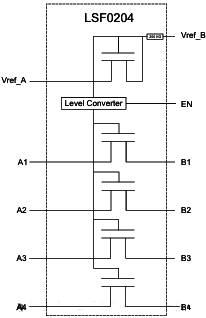 LSF系列由雙向電壓電平轉(zhuǎn)換器組成,工作電壓范圍為0.8至4.5V(Vref_A)和1.8至5.5V(Vref_B)。該范圍允許在無需方向端子的情況下,在開漏或推挽應用中進行0.8至5.0V的雙向電壓轉(zhuǎn)換。LSF系列支持最高100MHz傳輸速度的電平轉(zhuǎn)換應用。