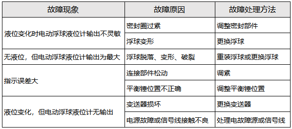 故障檢查、分析:原因有浮球脫落、浮球連桿斷裂、浮球轉(zhuǎn)換機構(gòu)損壞、浮球指針或表頭損壞幾種情況。經(jīng)現(xiàn)場檢查按壓儀表浮球轉(zhuǎn)換機構(gòu)、浮球連桿轉(zhuǎn)動靈活;測量指針和表頭檢查均無故障,與工藝聯(lián)系分析為內(nèi)部浮球脫落。