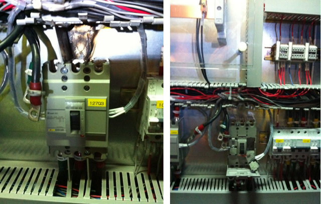 時隔不久,又調試同樣的一條生產線,由于這條生產線的控制柜與上一條生產線的控制柜的成套廠是同一家,而且生產間隔時間很短,基于上次事故的教訓,在系統(tǒng)上電前對控制柜做了 2 次比較細致的柜內清掃,但不幸的是,在試運行期間還是發(fā)生了同樣的短路事故,這一次導致主回路 250A 斷路器跳閘,用戶配電的保險絲一相被炸斷。