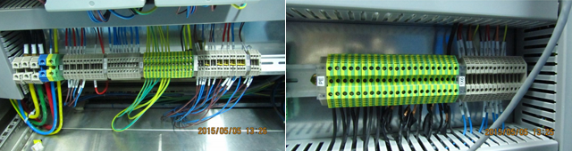 設(shè)置主柜的主接地銅排,截面積30-50mm2左右,采用壓接接觸。接地端子排應(yīng)采用短接片短接,并用粗短接地線連接至主接地銅排。