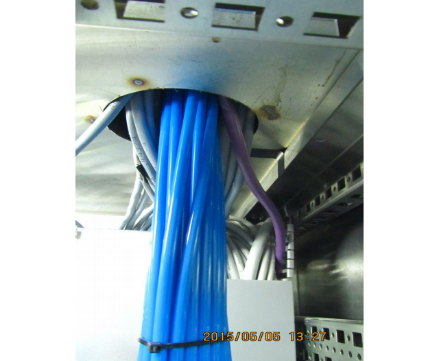 ·柜體出口開(kāi)孔遺留快口均未處理,容易割傷電纜造成短路事故。