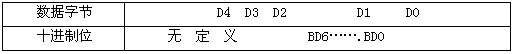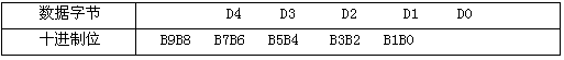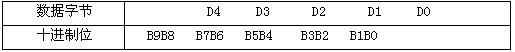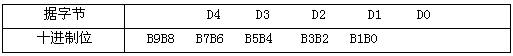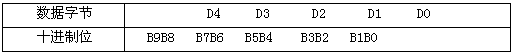 數(shù)據(jù)段的D4、D3、D2、D1、D0五個(gè)字節(jié)組成十位流量百分比測(cè)量數(shù)據(jù),每字節(jié)表示兩位十進(jìn)制數(shù),每字節(jié)表示的十進(jìn)制數(shù)值范圍:0-99。