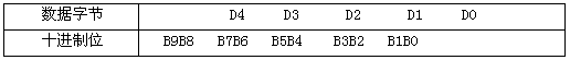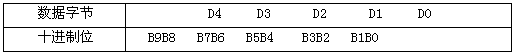 數(shù)據(jù)段的D4、D3、D2、D1、D0五個(gè)字節(jié)組成十位流量測(cè)量數(shù)據(jù),每字節(jié)表示兩位十進(jìn)制數(shù),每字節(jié)表示的十進(jìn)制數(shù)值范圍:0-99。